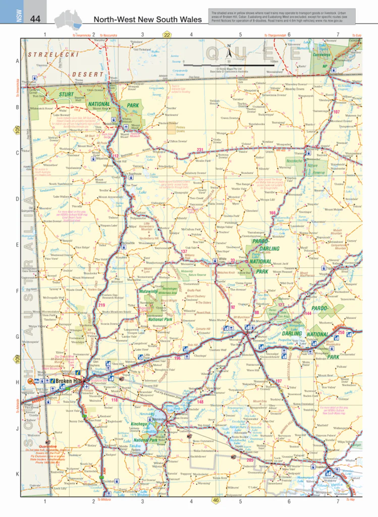 Full-colour maps of every state and territory in Australia, designed with clarity and functionality for large-format use in the cab. -