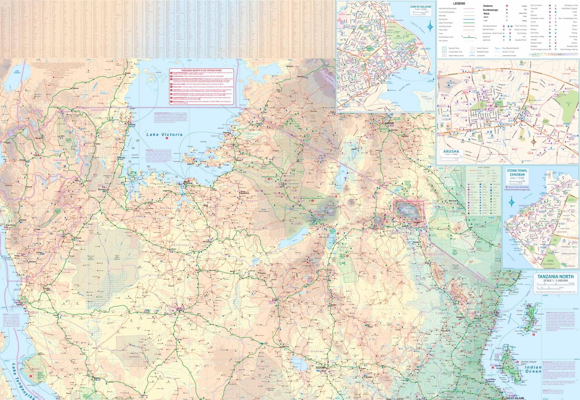 | Insets | Arusha, Stone Town, Dar es Salaam |