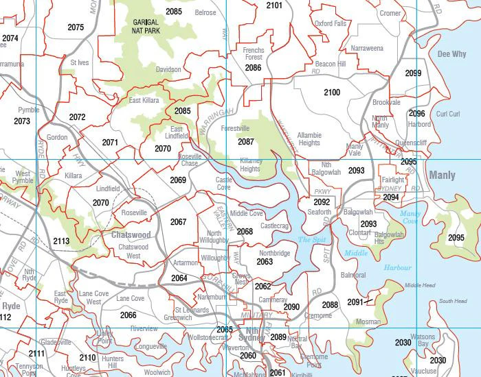 Postcode boundaries & numbers for all of New South Wales, metro to outback