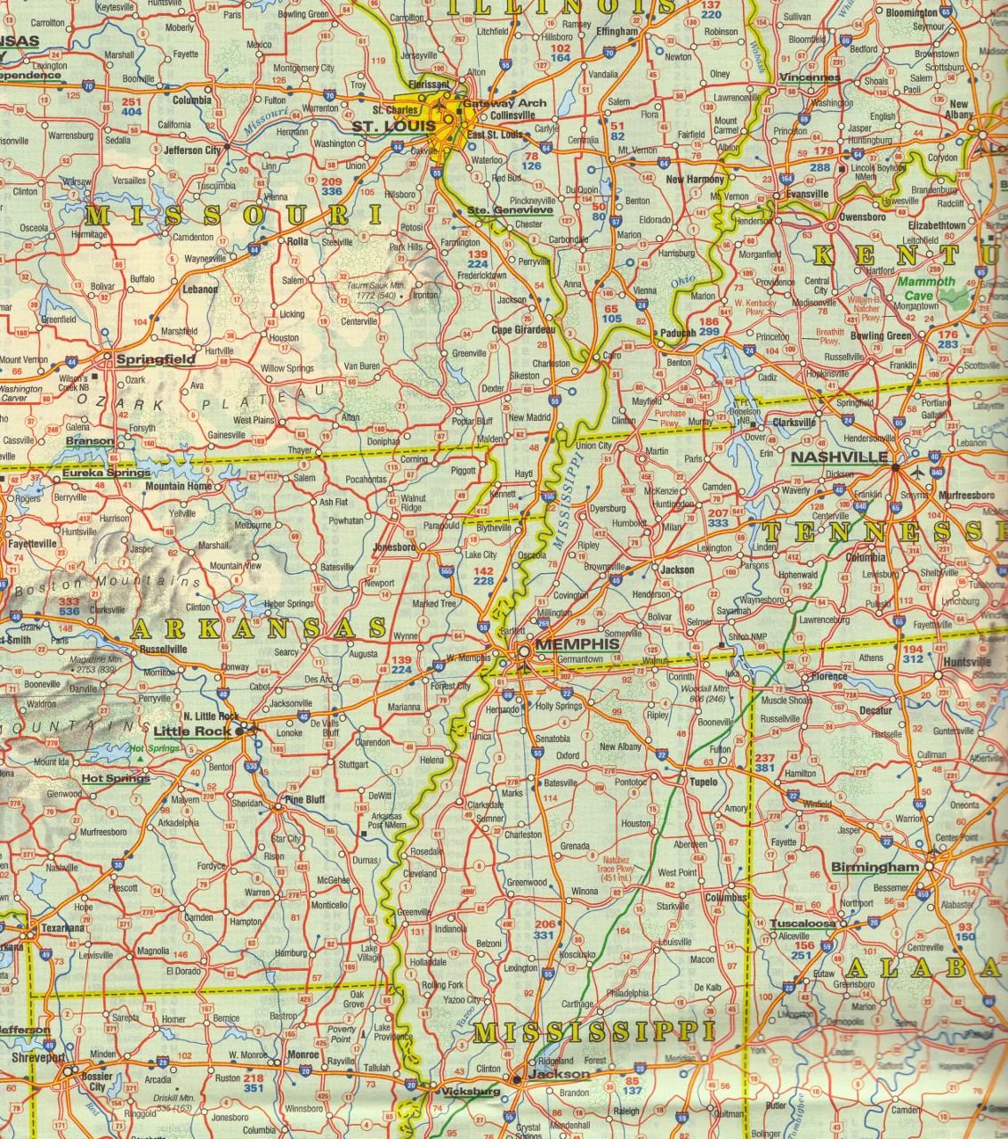 Interstates, U.S. highways, and state roads